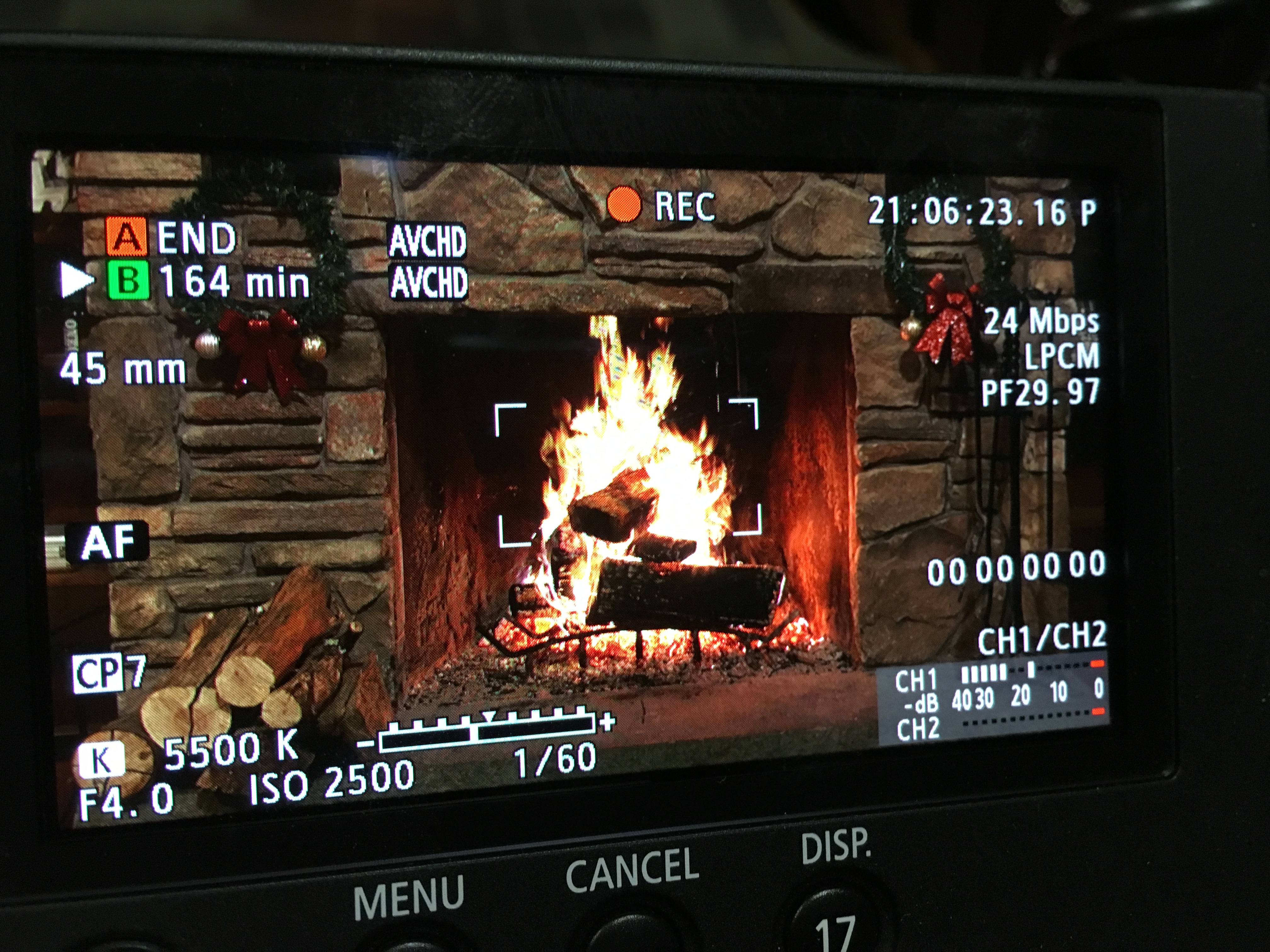 I ended up shooting a 30 minute segment of the Yule Log, and played it as an “as live” through Facebook Live the following night. I also had the opportunity to use Facebook Live’s interactive poll tool, which was fun to try.